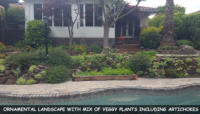 During spring and summer, at our landscape gardens you will see how we have balanced ornamental plants and visual only gardens with food producing plants which seasonally include: